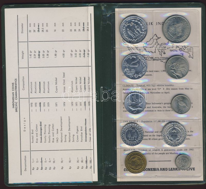 Indonézia 1970-79. ú.n. vegyes kiadás (hivatalos!) 1R - 100R 10klf db ... https://www.darabanth.com/de/74-Fernauktion/74.0/Numismatik/~279/Indonezia-1970-79-un-vegyes-kiadas-hivatalos-1R--100R-10klf-db-szettben-tanusitvannyal~II147787