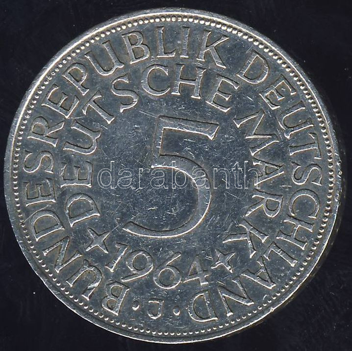 NSZK 1964J 5DM Ag T:2/3 ph https://www.darabanth.com/de/74-Fernauktion/74.0/Numismatik/~279/NSZK-1964J-5DM-Ag-T23-ph~II146680