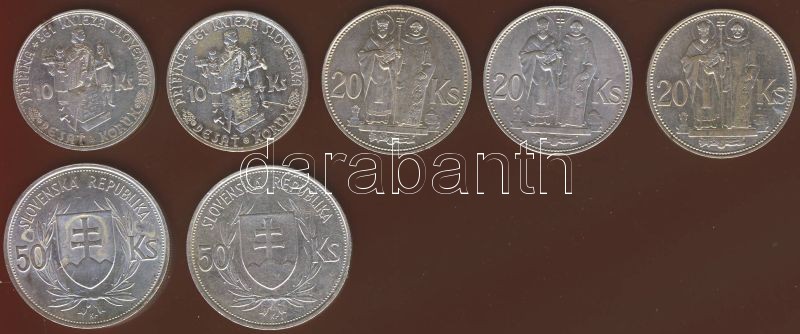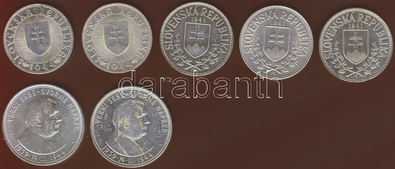 Szlovákia 1941-44. 10K (2x), 20K (3x) 2klf variáns, 50K (2x) T:2,2- https://www.darabanth.com/de/74-Fernauktion/74.0/Numismatik/~279/Szlovakia-1941-44-10K-2x-20K-3x-2klf-varians-50K-2x-T2-2-~II148526