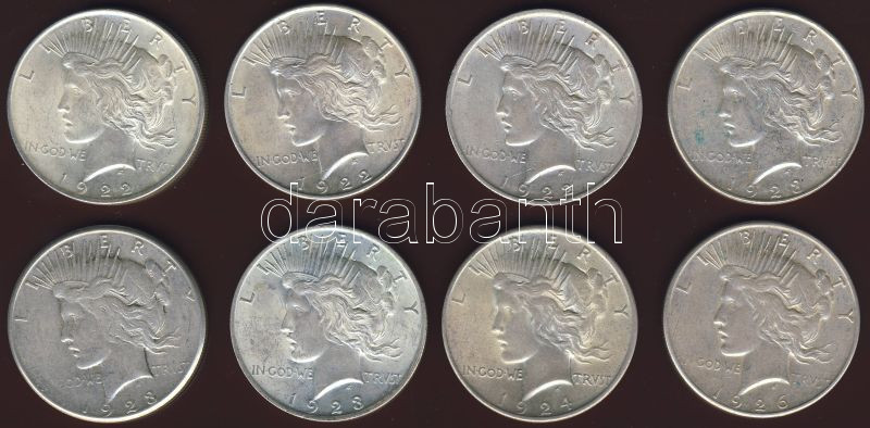 Beschreibung: USA 1922-26. 1$ Ag (8x) "Peace" T:2,2/3