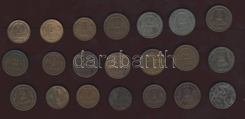 1926-42. 1f (8x) + 2f (14x) 2klf variáns T:3,4 https://www.darabanth.com/de/74-Fernauktion/74.0/Numismatik/~281/1926-42-1f-8x-plus-2f-14x-2klf-varians-T3-4~II148516