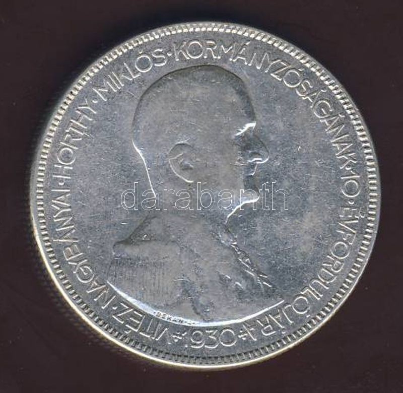 1930. 5P Ag "Horthy jobbra" T:3 https://www.darabanth.com/de/74-Fernauktion/74.0/Numismatik/~281/1930-5P-Ag-Horthy-jobbra-T3~II148482