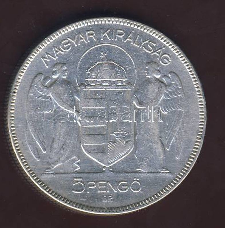 1930. 5P Ag "Horthy jobbra" T:3 https://www.darabanth.com/de/74-Fernauktion/74.0/Numismatik/~281/1930-5P-Ag-Horthy-jobbra-T3~II148483