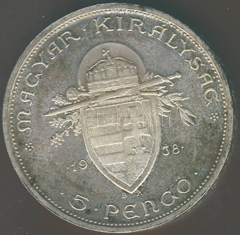 1938. 5P Ag "Szt. István" T:1 ! https://www.darabanth.com/de/74-Fernauktion/74.0/Numismatik/~281/1938-5P-Ag-Szt-Istvan-T1-~II144449