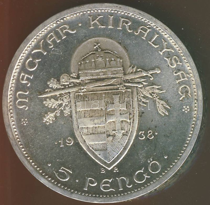 1938. 5P Ag "Szt. István" T:1 ! https://www.darabanth.com/de/74-Fernauktion/74.0/Numismatik/~281/1938-5P-Ag-Szt-Istvan-T1-~II144453