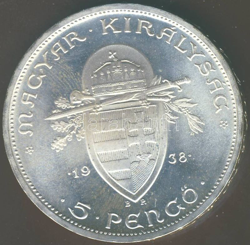 1938. 5P Ag "Szt. István" T:1 ! https://www.darabanth.com/de/74-Fernauktion/74.0/Numismatik/~281/1938-5P-Ag-Szt-Istvan-T1-~II144459