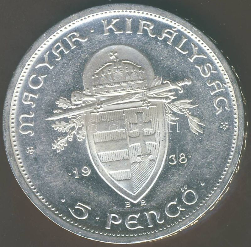 1938. 5P Ag "Szt. István" T:1 ! https://www.darabanth.com/de/74-Fernauktion/74.0/Numismatik/~281/1938-5P-Ag-Szt-Istvan-T1-~II144462