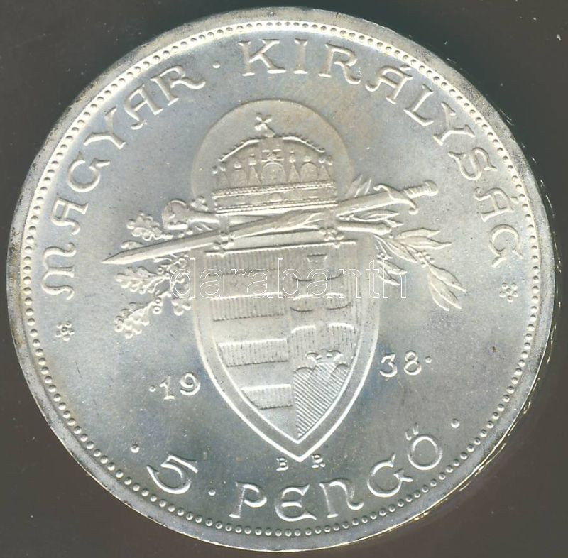 1938. 5P Ag "Szt. István" T:1 ! https://www.darabanth.com/de/74-Fernauktion/74.0/Numismatik/~281/1938-5P-Ag-Szt-Istvan-T1-~II144464