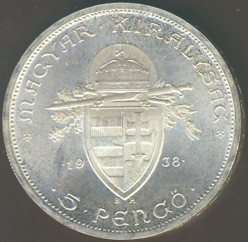1938. 5P Ag "Szt. István" T:1 ! https://www.darabanth.com/de/74-Fernauktion/74.0/Numismatik/~281/1938-5P-Ag-Szt-Istvan-T1-~II144466