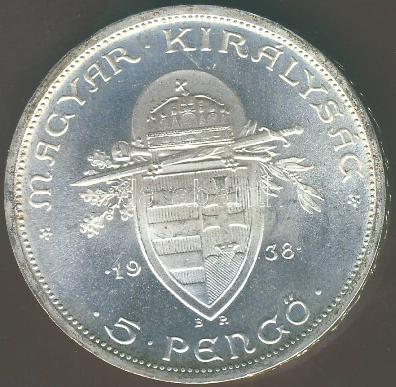 1938. 5P Ag "Szt. István" T:1 ! https://www.darabanth.com/de/74-Fernauktion/74.0/Numismatik/~281/1938-5P-Ag-Szt-Istvan-T1-~II144470
