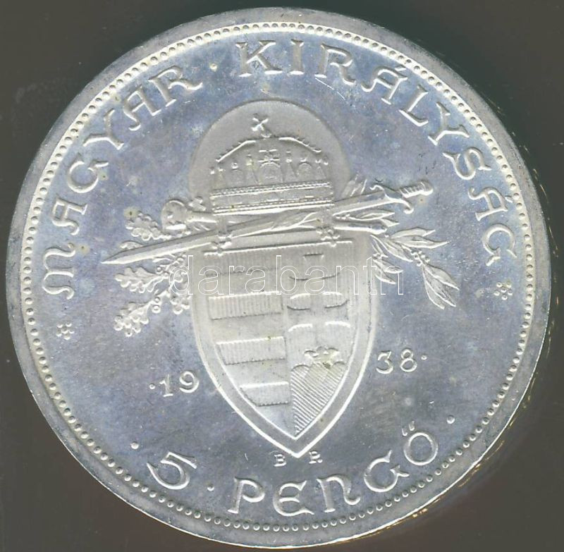 1938. 5P Ag "Szt. István" T:1 ! https://www.darabanth.com/de/74-Fernauktion/74.0/Numismatik/~281/1938-5P-Ag-Szt-Istvan-T1-~II144478