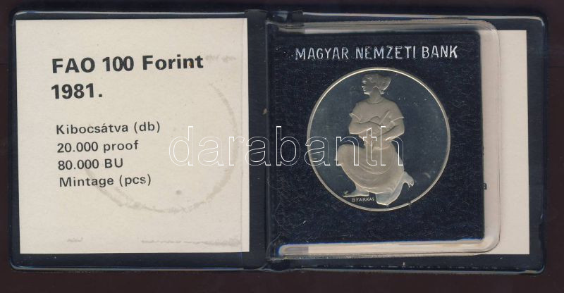 1981. 100Ft "FAO" T:PP Eredeti tokban, tanúsítvánnyal! https://www.darabanth.com/de/74-Fernauktion/74.0/Numismatik/~281/1981-100Ft-FAO-TPP-Eredeti-tokban-tanusitvannyal~II147917