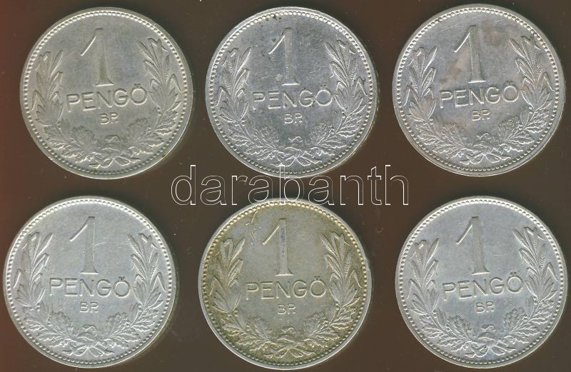 1P Ag 1926 (1x), 1927 (2x), 1938 (1x), 1939 (2x) összesen 6db T:2,2/3+ https://www.darabanth.com/de/74-Fernauktion/74.0/Numismatik/~281/1P-Ag-1926-1x-1927-2x-1938-1x-1939-2x-osszesen-6db-T2-23plus~II147691