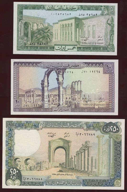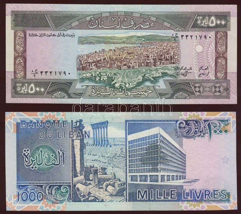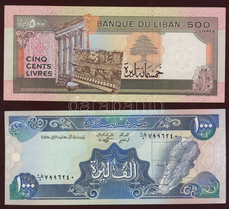 Libanon 1986-88. 5db klf bankjegy T:500L II+, többi I https://www.darabanth.com/de/75-Fernauktion/75.0/Numismatik/~280/Libanon-1986-88-5db-klf-bankjegy-T500L-IIplus-tobbi-I~II140624