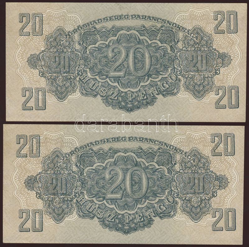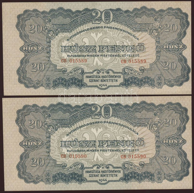 1944. 20P "V.H." (2x) egymásutáni sorszámmal T:I https://www.darabanth.com/de/75-Fernauktion/75.0/Numismatik/~281/1944-20P-VH-2x-egymasutani-sorszammal-TI~II150889