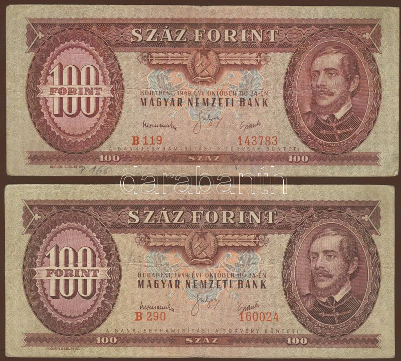 1949. 100Ft (3x) T:II/III,III https://www.darabanth.com/de/75-Fernauktion/75.0/Numismatik/~281/1949-100Ft-3x-TIIIII-III~II148369