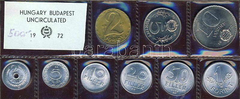1972. 2f-10Ft (9klf db) forgalmi sor szettben T:1 https://www.darabanth.com/de/76-Fernauktion/76.0/Numismatik/~215/1972-2f-10Ft-9klf-db-forgalmi-sor-szettben-T1~II151930