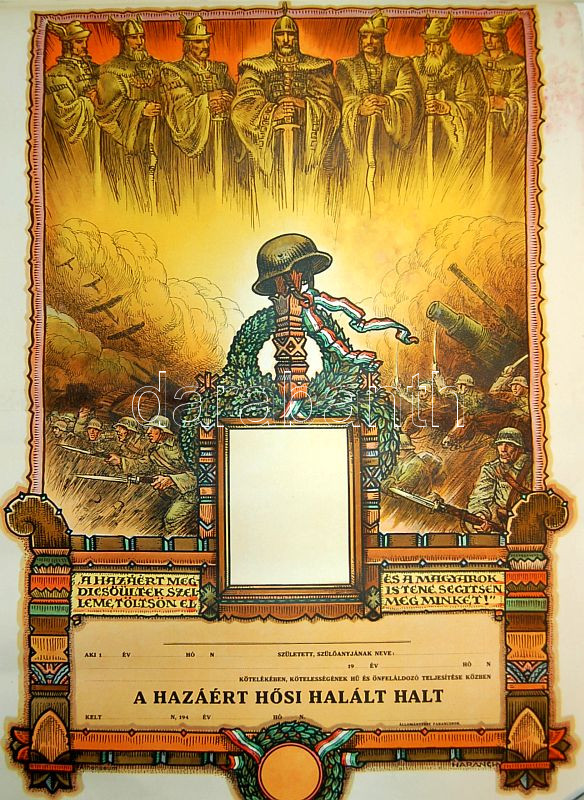 1944 Hősi halotti oklevél nagyalakú díszes https://www.darabanth.com/de/77-Fernauktion/77.0/Andere-Sammelgebiete/~272/1944-Hosi-halotti-oklevel-nagyalaku-diszes~II152475