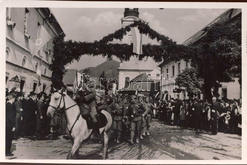 Nagybánya magyar csapatok bevonulása https://www.darabanth.com/de/77-Fernauktion/77.0/Ansichtskarten/~316/Nagybanya-magyar-csapatok-bevonulasa~II155797