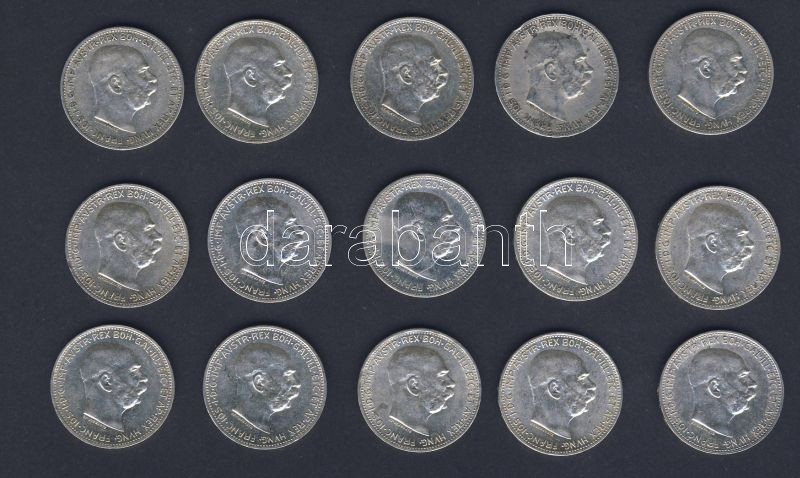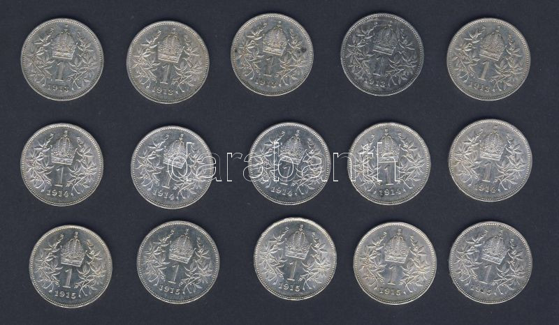 Beschreibung: Ausztria 1Kr Ag 1913 (5x), 1914 (5x), 1915 (5x). Összesen 15db T:1/2 (többsége),2