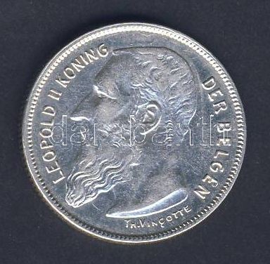 Beschreibung: Belgium 1909. 2Fr Ag flamand nyelvű variáns pontok nélkül T:2- k.