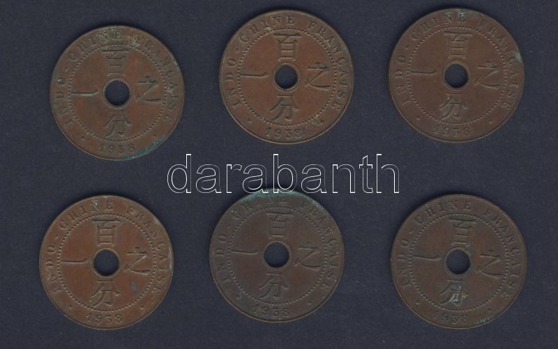 Francia-Indokína 1938. 1c (6x) T:2/3 https://www.darabanth.com/de/77-Fernauktion/77.0/Numismatik/~356/Francia-Indokina-1938-1c-6x-T23~II156125