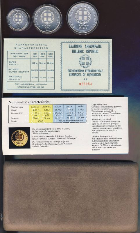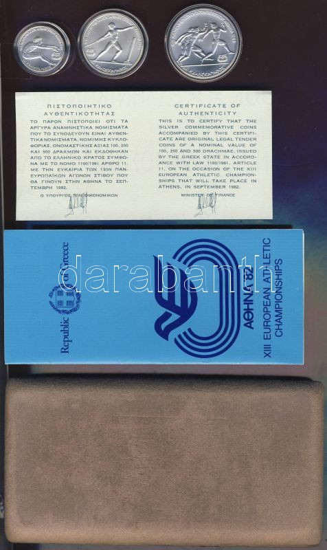 Beschreibung: Görögország 1982. 100Dr Ag, 250Dr Ag, 500Dr Ag "Pán-európai játékok" teljes sor! T:BU Erdeti dísztokban, tanúsítvánnyal!
