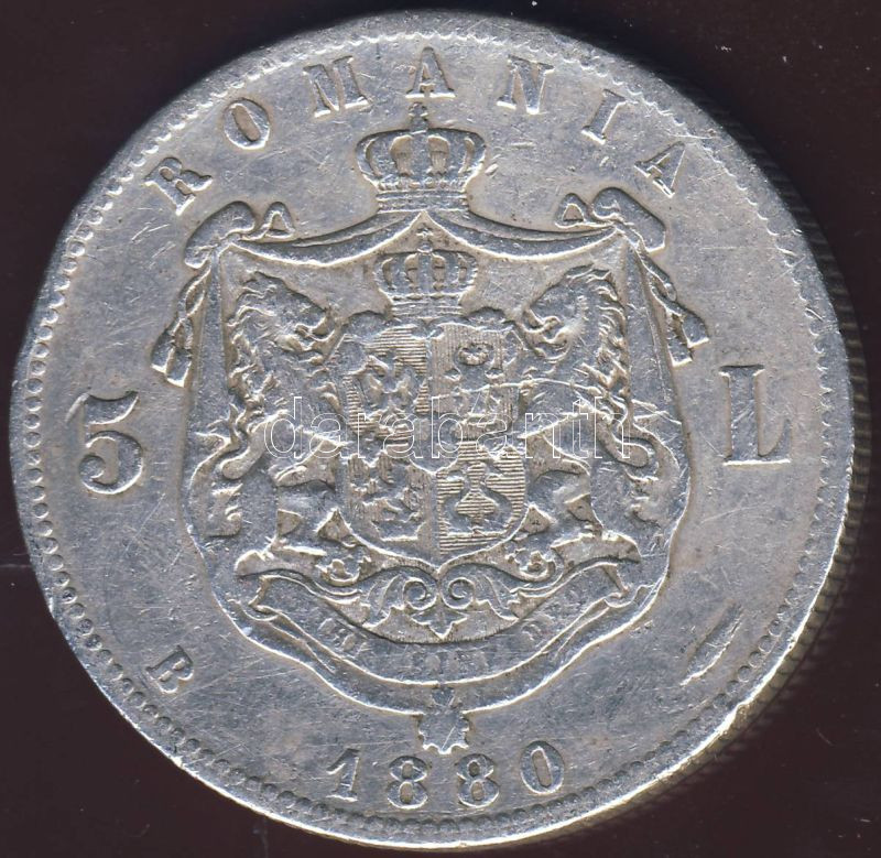 Románia 1880. 5L Ag T:3- ph https://www.darabanth.com/de/77-Fernauktion/77.0/Numismatik/~356/Romania-1880-5L-Ag-T3-ph~II151381