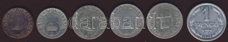 1926. 10f (2x), 20f (2x), 50f T:3,3- + 1942. 1P hibás veret T:2+ https://www.darabanth.com/de/77-Fernauktion/77.0/Numismatik/~357/1926-10f-2x-20f-2x-50f-T3-3-plus-1942-1P-hibas-veret-T2plus~II155368