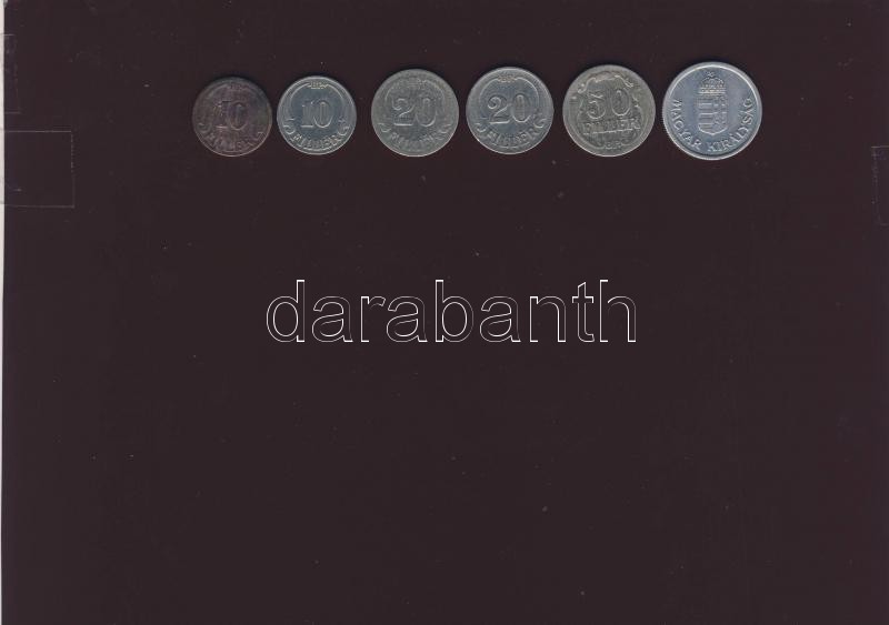 Beschreibung: 1926. 10f (2x), 20f (2x), 50f T:3,3- + 1942. 1P hibás veret T:2+