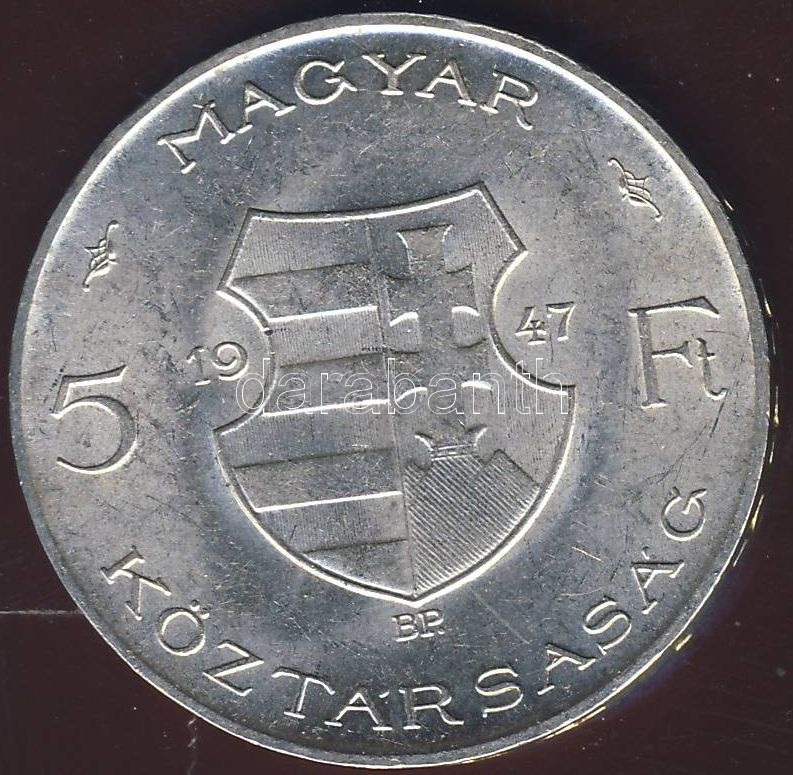 1947. 5Ft Ag "Kossuth" T:1 https://www.darabanth.com/de/77-Fernauktion/77.0/Numismatik/~357/1947-5Ft-Ag-Kossuth-T1~II153024