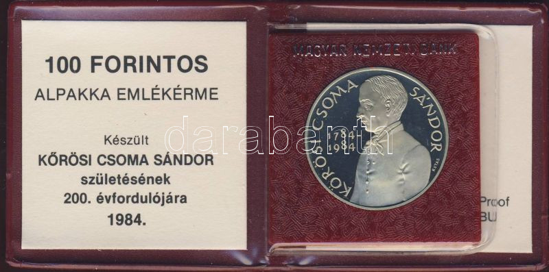 1984. 100Ft "Kőrösi Csoma Sándor" T:PP Eredeti tokban, tanúsítvánnyal! https://www.darabanth.com/de/77-Fernauktion/77.0/Numismatik/~357/1984-100Ft-Korosi-Csoma-Sandor-TPP-Eredeti-tokban-tanusitvannyal~II152798