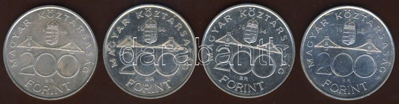1994. 200Ft Ag "Deák" (4x) T:BU,2 https://www.darabanth.com/de/77-Fernauktion/77.0/Numismatik/~357/1994-200Ft-Ag-Deak-4x-TBU-2~II152982