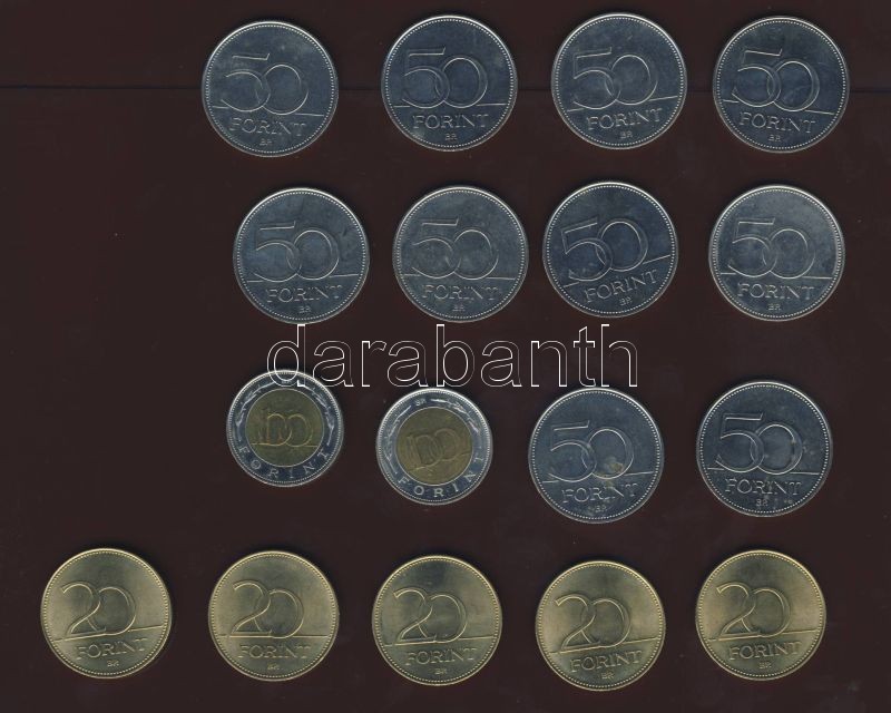2002. 100Ft "Kossuth" (2x) + 2003. 20Ft "Deák" (5x) + 2004. 50Ft "EU" ... https://www.darabanth.com/de/77-Fernauktion/77.0/Numismatik/~357/2002-100Ft-Kossuth-2x-plus-2003-20Ft-Deak-5x-plus-2004-50Ft-EU-1x-plus-2005-50Ft-Nemzetkoz~II153133