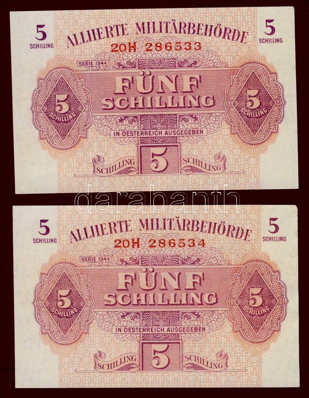 Ausztria/nemzetközi megszállás 1944. 5Sch (10x) egymásutáni sorszámmal... https://www.darabanth.com/de/77-Fernauktion/77.0/Numismatik/~362/Ausztrianemzetkozi-megszallas-1944-5Sch-10x-egymasutani-sorszammal-TI-I-~II155657
