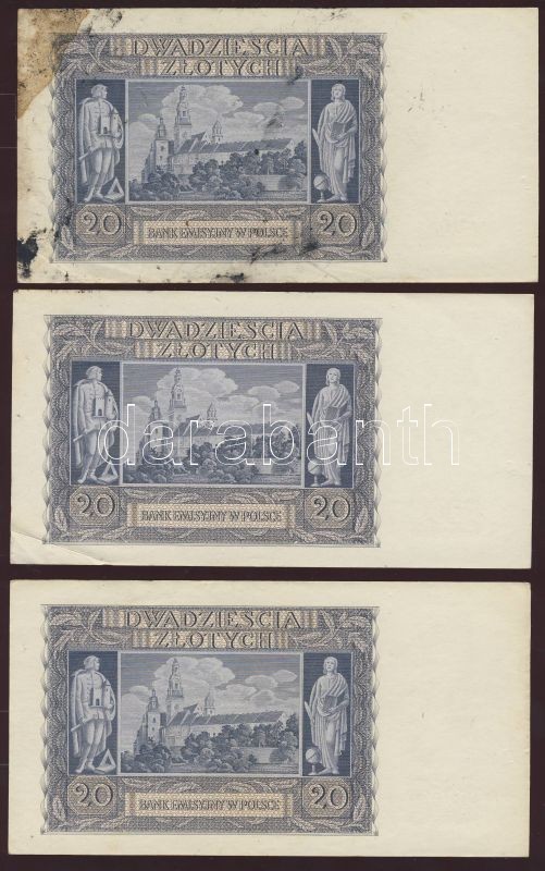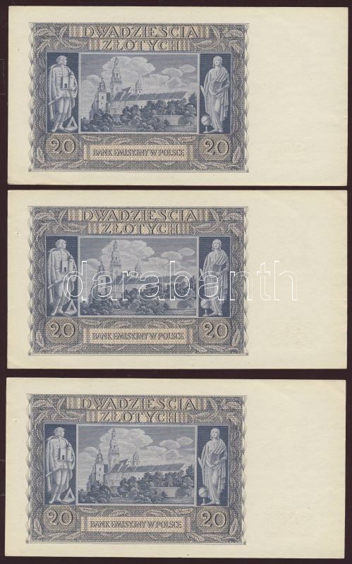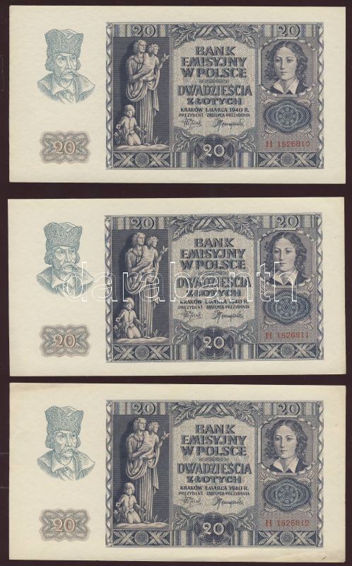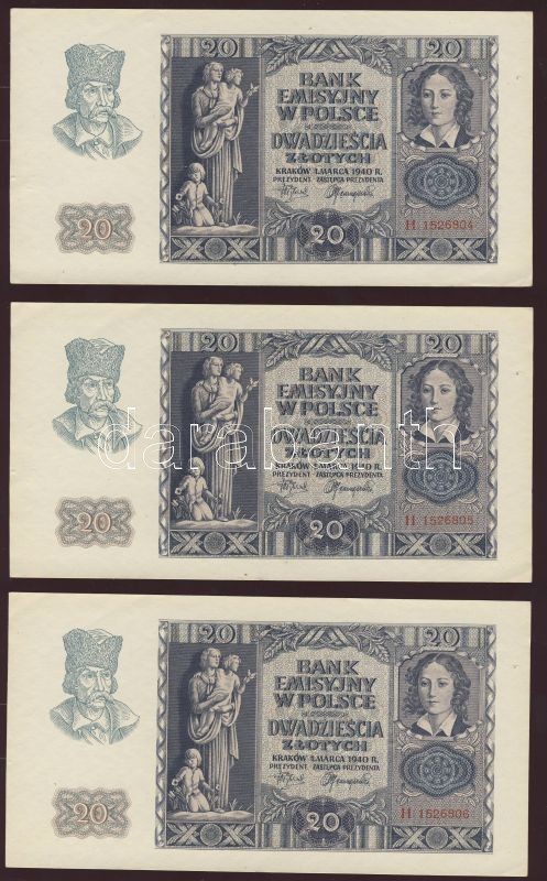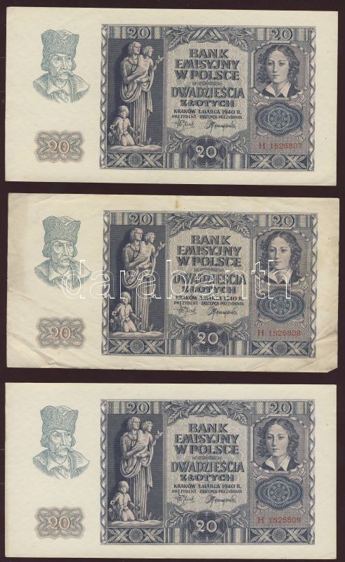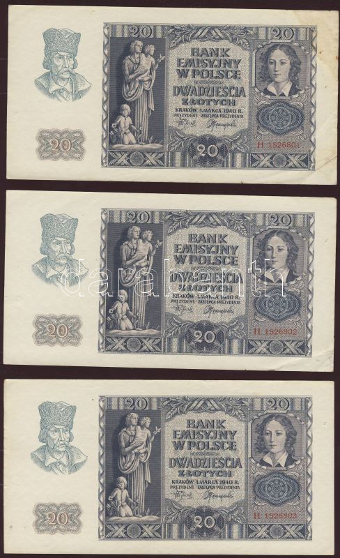 Lengyelország/német megszállás 1940. 20Zl (12x) egymásutáni sorszámokk... https://www.darabanth.com/de/77-Fernauktion/77.0/Numismatik/~362/Lengyelorszagnemet-megszallas-1940-20Zl-12x-egymasutani-sorszamokkal-TI-I-II~II153440