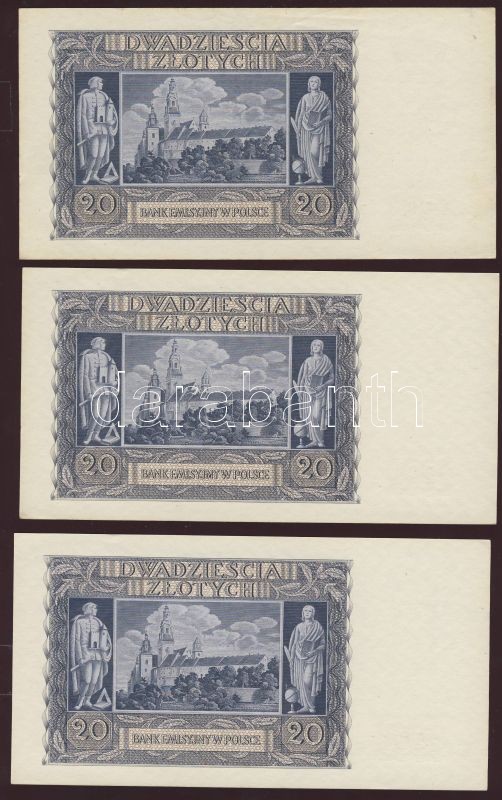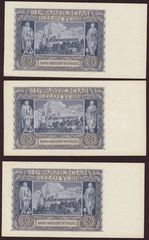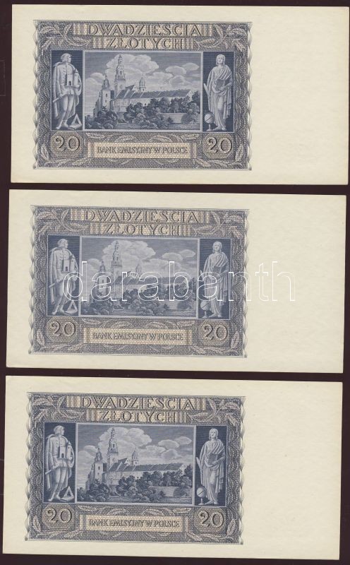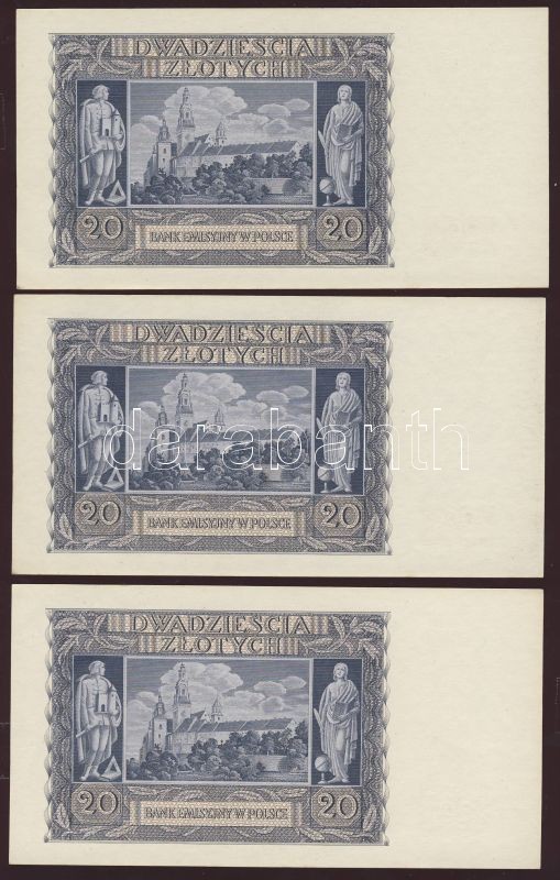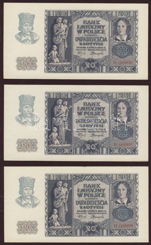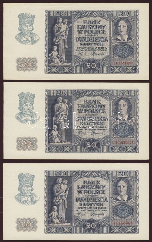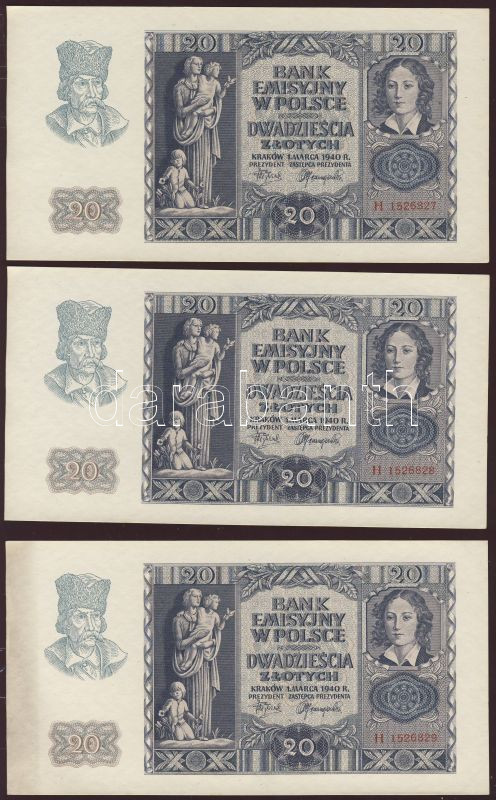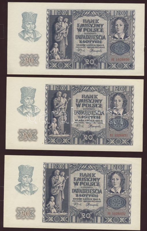 Lengyelország/német megszállás 1940. 20Zl (12x) egymásutáni sorszámokk... https://www.darabanth.com/de/77-Fernauktion/77.0/Numismatik/~362/Lengyelorszagnemet-megszallas-1940-20Zl-12x-egymasutani-sorszamokkal-TI-I-~II153452