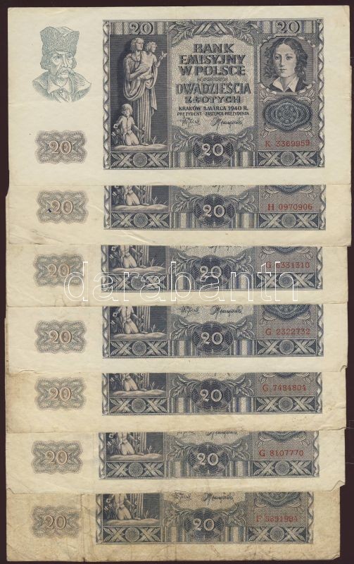 Beschreibung: Lengyelország/német megszállás 1940. 20Zl (14x) T:II,III