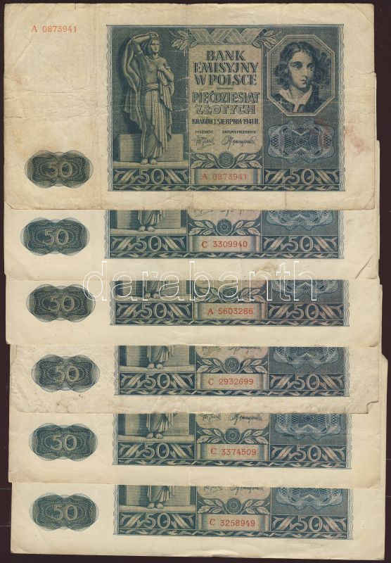 Lengyelország/német megszállás 1941. 50Zl (7x) + 100Zl (1x) T:II,III https://www.darabanth.com/de/77-Fernauktion/77.0/Numismatik/~362/Lengyelorszagnemet-megszallas-1941-50Zl-7x-plus-100Zl-1x-TII-III~II153346