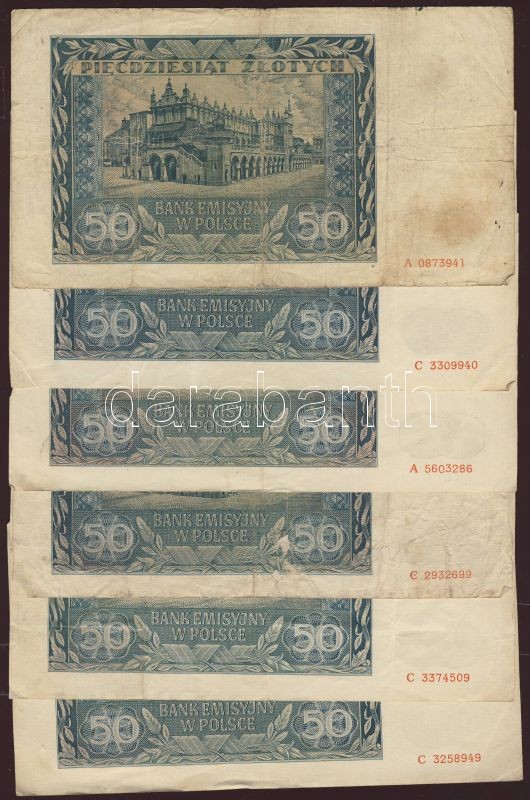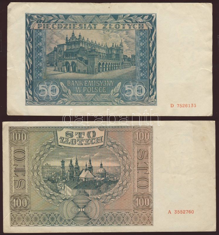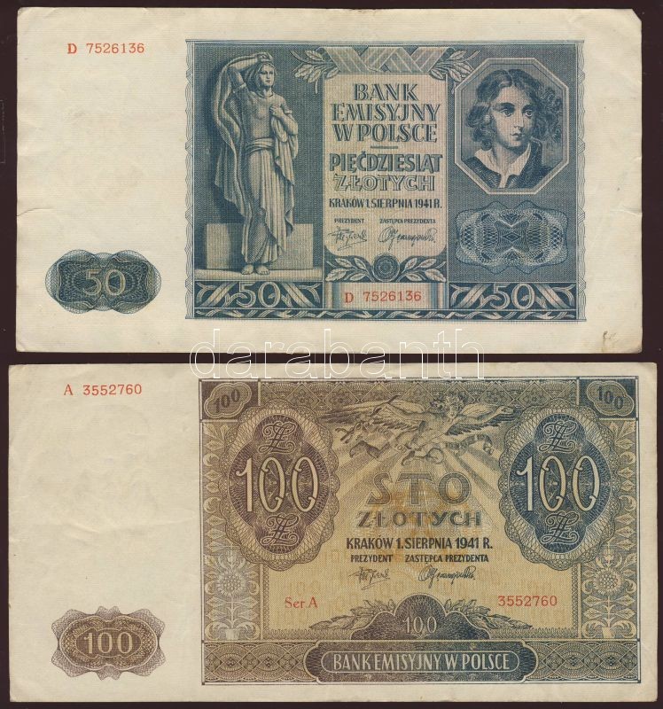 Beschreibung: Lengyelország/német megszállás 1941. 50Zl (7x) + 100Zl (1x) T:II,III