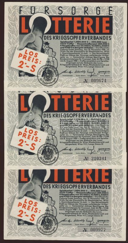 Ausztria 1950. Lotterie 2Sch (3x) T:I- https://www.darabanth.com/de/77-Fernauktion/77.0/Numismatik/~364/Ausztria-1950-Lotterie-2Sch-3x-TI-~II154494