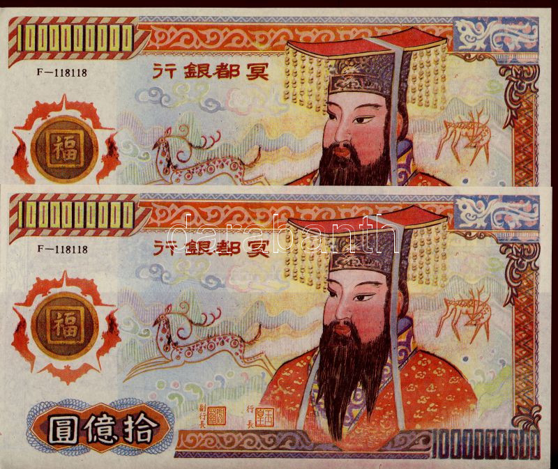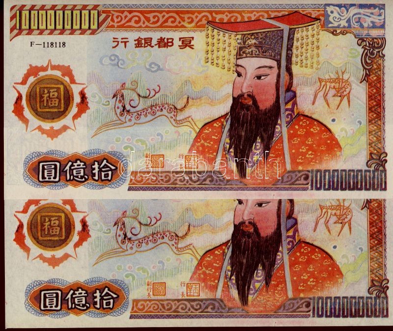 Kína extrém nagyalakú dekoratív égetési pénz 1000.000.000 névértékben,... https://www.darabanth.com/de/77-Fernauktion/77.0/Numismatik/~364/Kina-extrem-nagyalaku-dekorativ-egetesi-penz-1000000000-nevertekben-kulonleges-papir~II156016