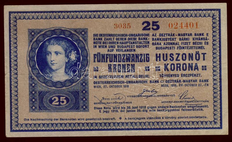 1918. 25K hamis "Debreczen" szárazbélyegzővel T:II https://www.darabanth.com/de/77-Fernauktion/77.0/Numismatik/~365/1918-25K-hamis-Debreczen-szarazbelyegzovel-TII~II155633