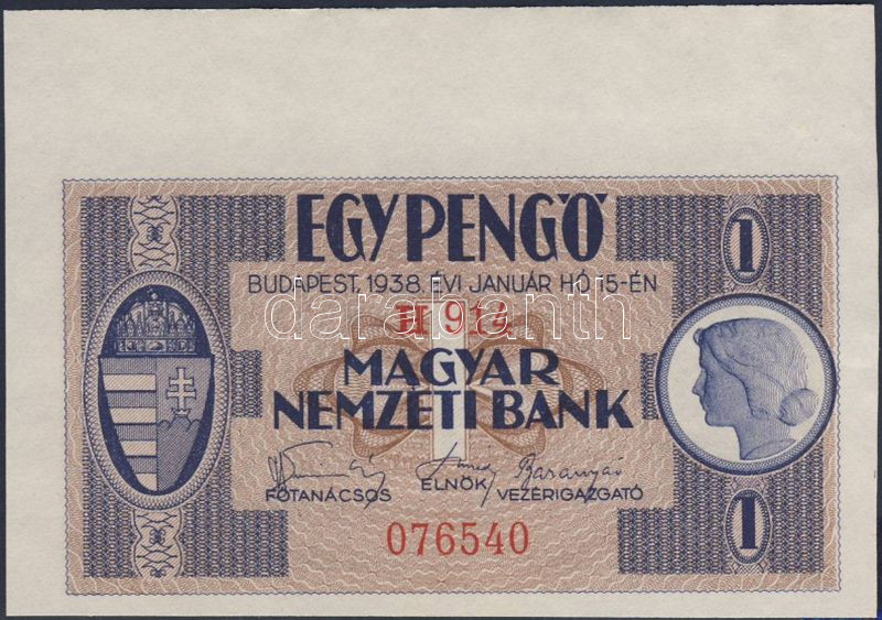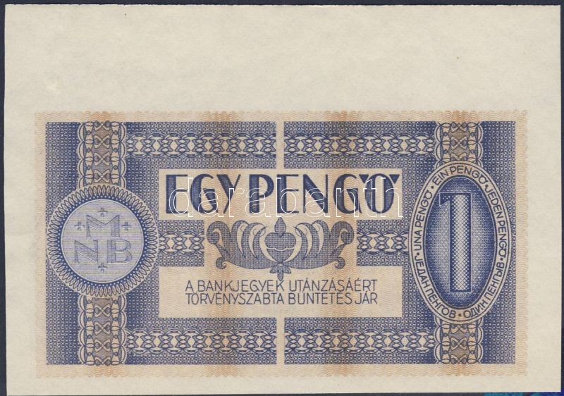 1938. 1P felső ívszéllel T:I https://www.darabanth.com/de/77-Fernauktion/77.0/Numismatik/~365/1938-1P-felso-ivszellel-TI~II156257