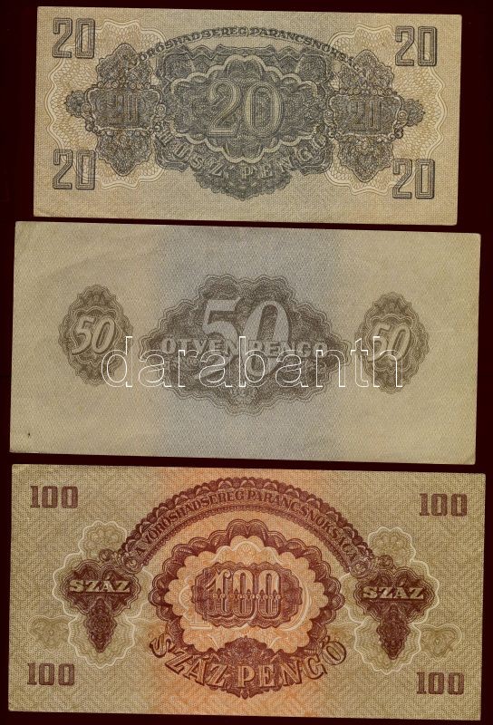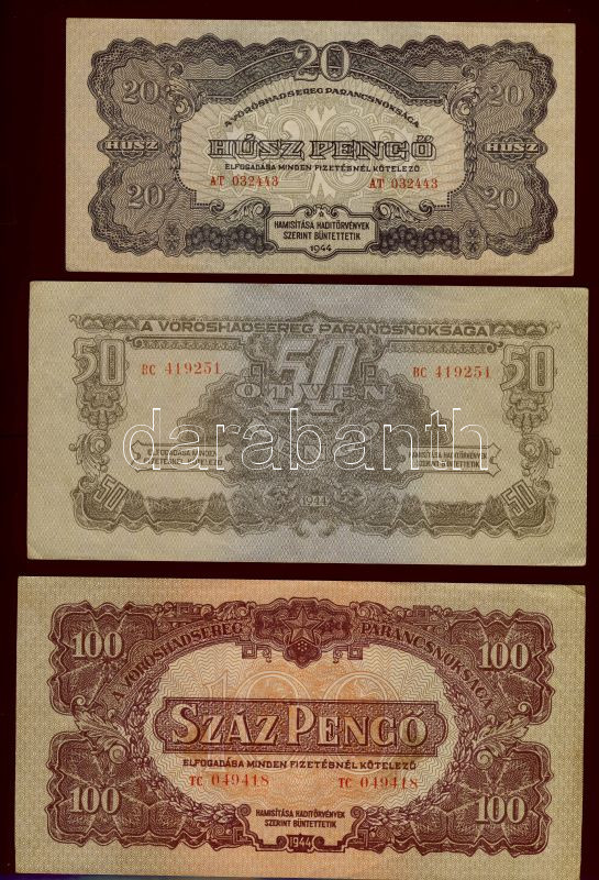 1944. "V.H." 20P, 50P, 100P T:II https://www.darabanth.com/de/77-Fernauktion/77.0/Numismatik/~365/1944-VH-20P-50P-100P-TII~II155951