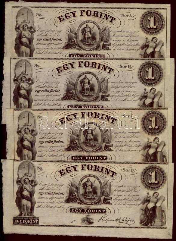 Emigrációs kiadás "Kossuth bankók" 18.. 1Ft A,B,C,D 4klf sorozatbetűve... https://www.darabanth.com/de/77-Fernauktion/77.0/Numismatik/~365/Emigracios-kiadas-Kossuth-bankok-18-1Ft-A-B-C-D-4klf-sorozatbetuvel-TI~II156002