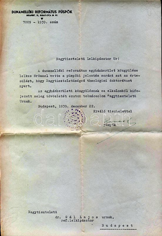 1939 Ravasz László református püspök aláírása levélen https://www.darabanth.com/de/78-Fernauktion/78.0/Andere-Sammelgebiete/~285/1939-Ravasz-Laszlo-reformatus-puspok-alairasa-levelen~II157124