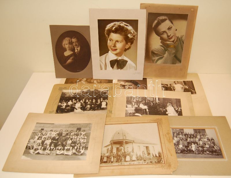 Beschreibung: cca 1890-1940 96 db túlnyomórészt nagyméretű tablófotó (benne katonai fotók és néhány fotólap)