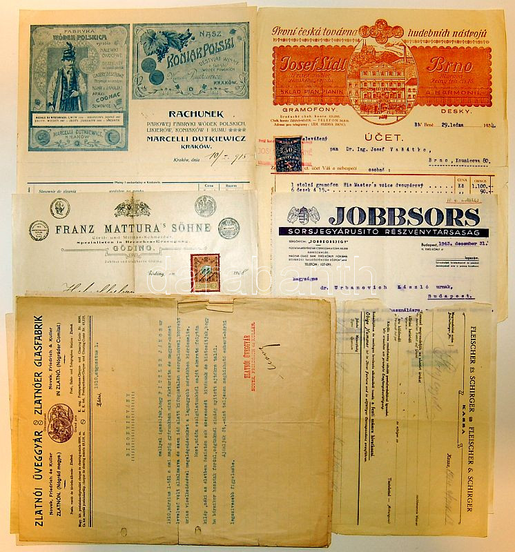 Beschreibung: 1890-1910 10 db fejléces számla, üzleti levél