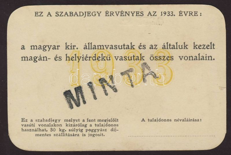 1933. Magyar Királyi Államvasutak "Szabadjegy I.osztály" "000-ás Minta... https://www.darabanth.com/de/78-Fernauktion/78.0/Andere-Sammelgebiete/~290/1933-Magyar-Kiralyi-Allamvasutak-Szabadjegy-Iosztaly-000-as-Minta~II157429